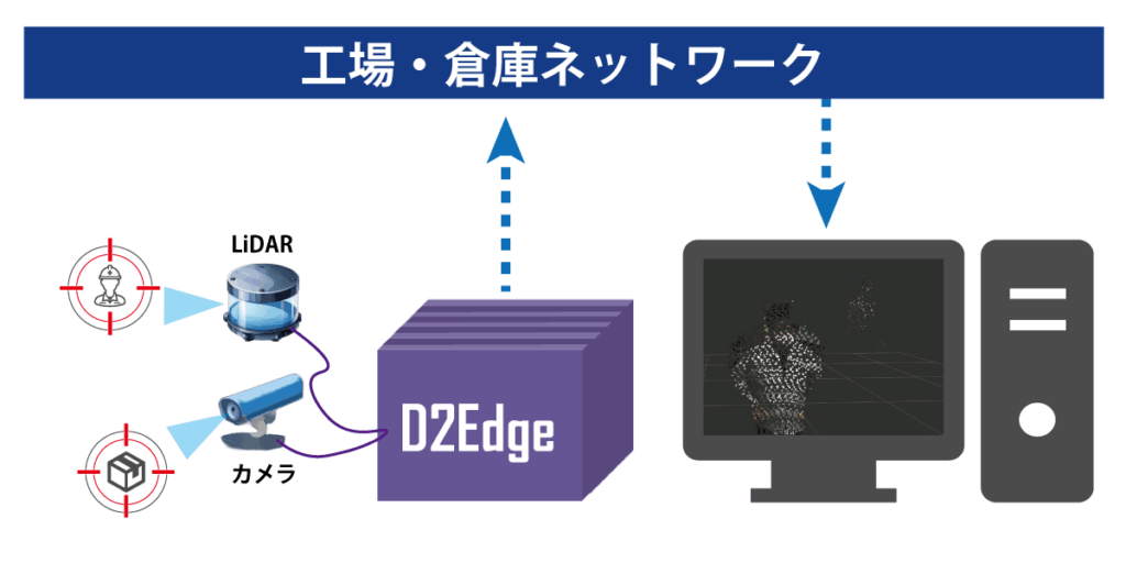 D2Edgeは工場・倉庫等の現場の稼働状況のセンシング・データ化を目的に開発されたセンシングエッジコンピューティングボックスです。